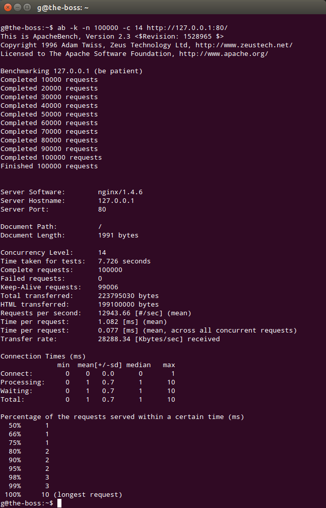 ab - Apache HTTP server benchmarking tool, Ubuntu 14.04.02 x64: