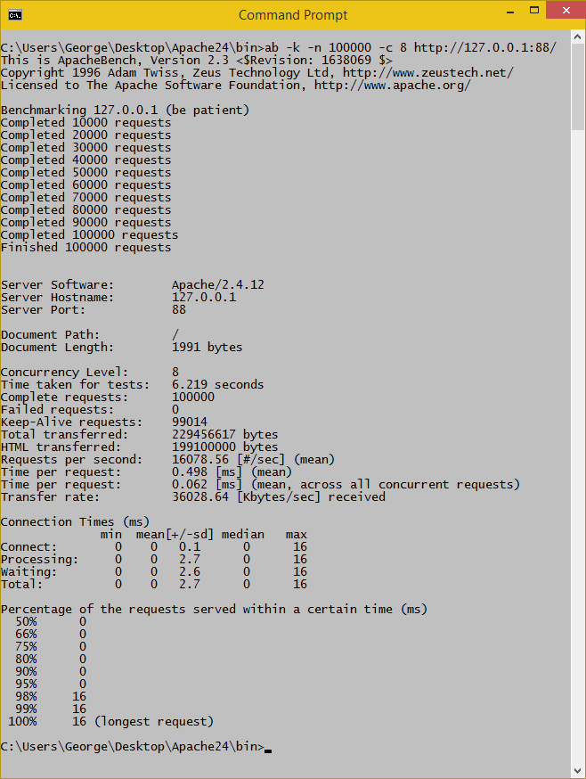 ab - Apache HTTP server benchmarking tool, Windows 10 build 9879: