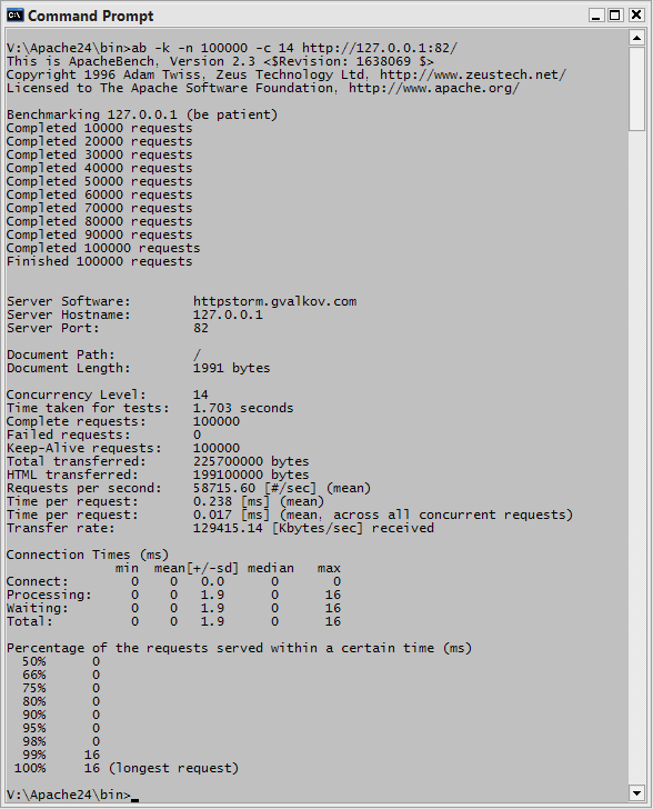 ab - Apache HTTP server benchmarking tool, Windows 2003 x64 SP2: